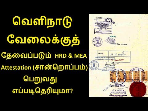 வெளிநாடு வேலைக்குத் தேவைப்படும் HRD & MEA Attestation சான்றொப்பம் பெறுவது எப்படிதெரியுமா - Certificate Attestation In Chennai - Tamil video is about How and where to apply for The Ministry of External Affairs attests original documents//true copies of documents for use abroad. Attestation ...