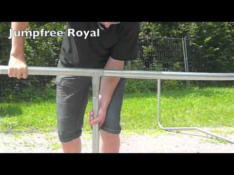 Jumpfree Royal }}- Der Rahmen des Jumpfree Trampolins ist so konstruiert, dass er durch Spannung so zusammengehalten wird, dass die Füsse nicht wegfallen, wenn das ...